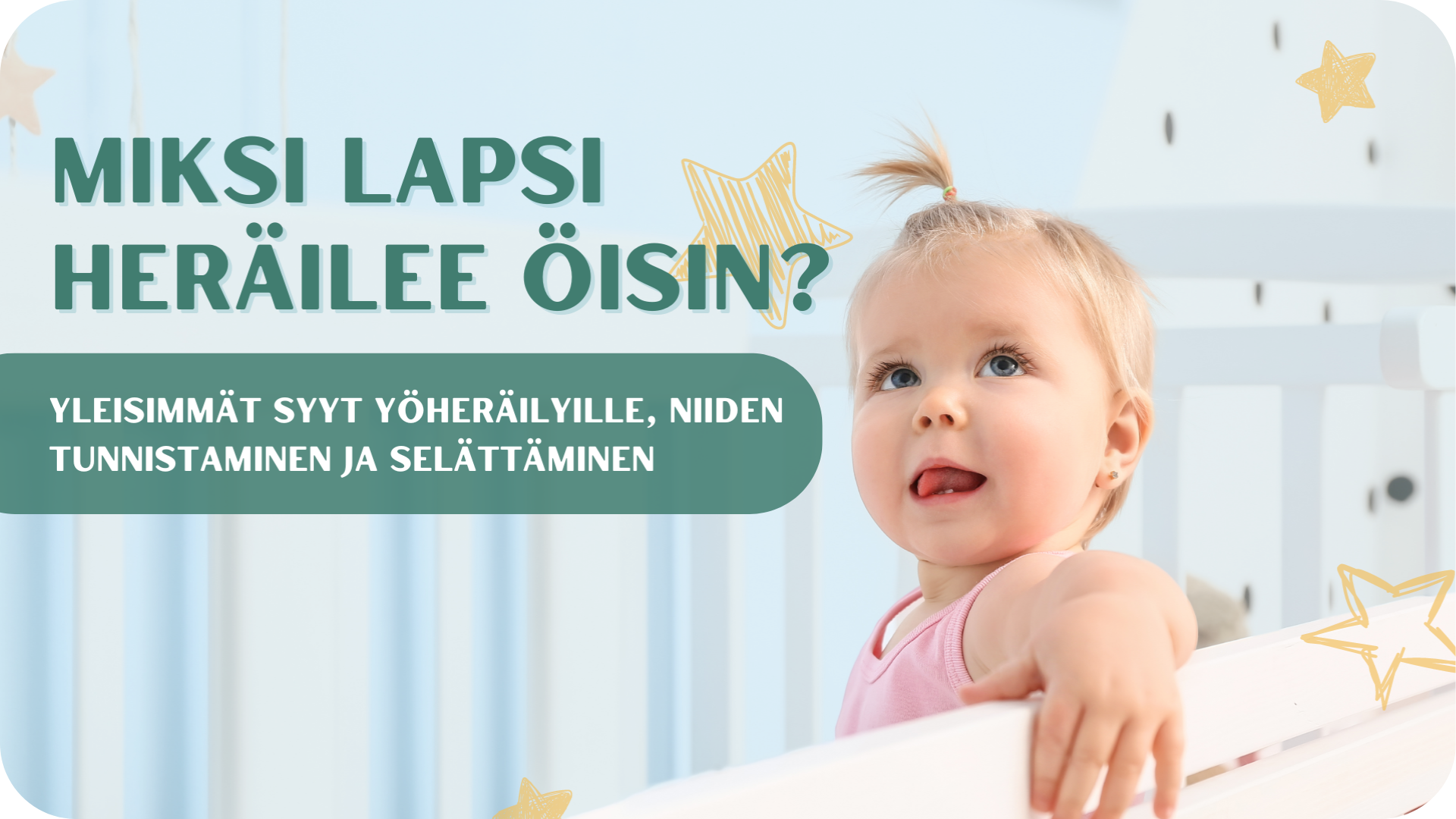 siksi helmikuun liveluennolla käydäänkin läpi kaikki yleisimmät yöheräilyjen taustalla olevat syyt sekä konkreettiset ratkaisut niihin, jotta pääsette pian nauttimaan ihanan levänneestä olosta aamuisin koko perhe (noh, jos siis vaan maltat sarjojen katselun sijaan mennä ajoissa nukkumaan!